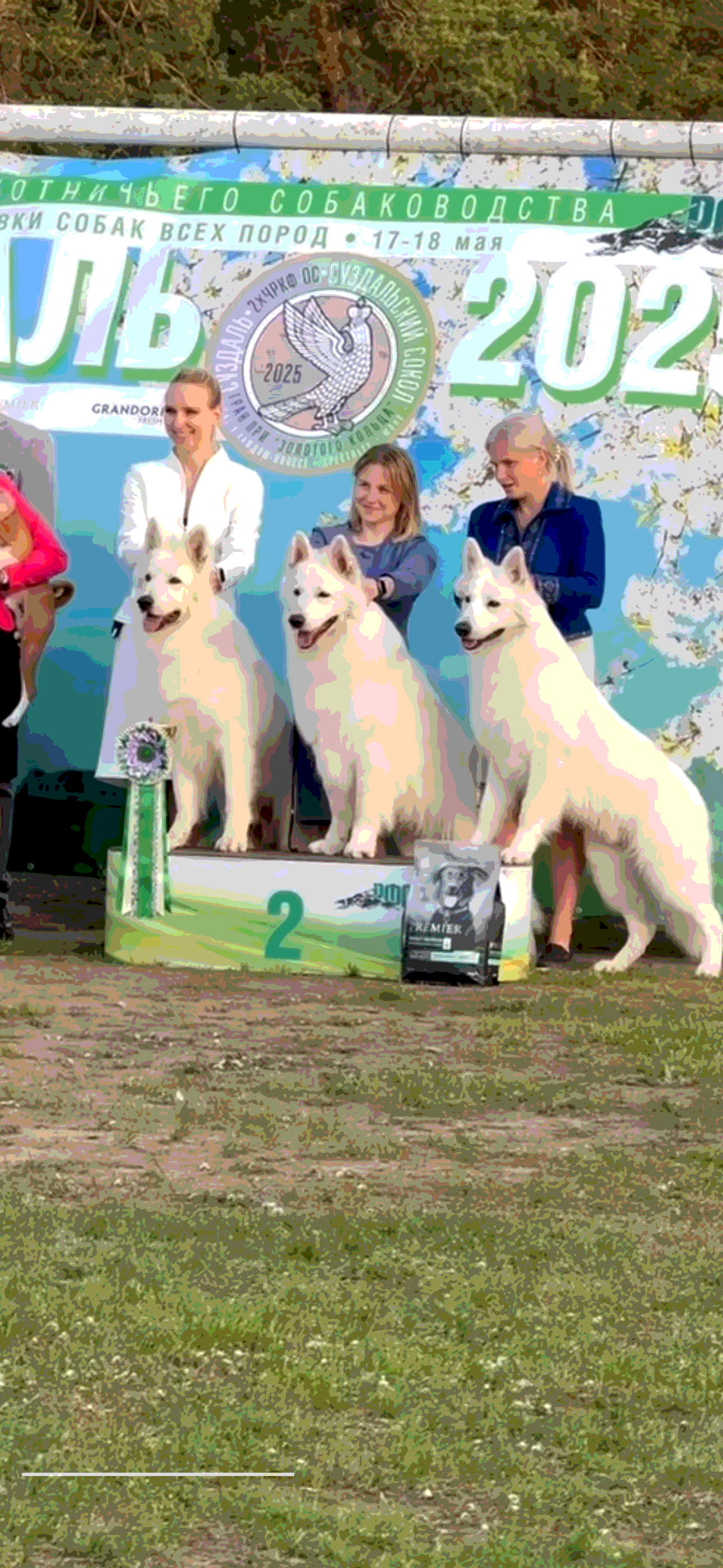 В составе участников был всего лишь один юниор - представитель питомника КОСМА ХАУС, заводчик Мария Косолапова, единственная сука - CHER-NIKA IZBB, приехавшая из неблизкого Нижнего Новгорода, в отрытом классе был лишь XANT IZBB, зато в классе чемпионов собрались: чемпион мира и Европы, лучшая собака рейтинга Бест Рашн Дог 2024 D-CE IZBB, дважды вице чемпион мира WOW IZBB, а так же молодой кобель из Твери RAYDEN IZBB, занявший второе место в рейтинге породы Бест Рашн Дог 2024. Это был настоящий батл, достойный мирового уровня! По итогу сравнения эксперты оба дня отдавали предпочтение D-CE IZBB, а в воскресение он удостоился резерва группы! Поздравляем его владельцев - Татьяну, Светлану, Евгения Галушкиных с великолепным выступлением члена их семьи.